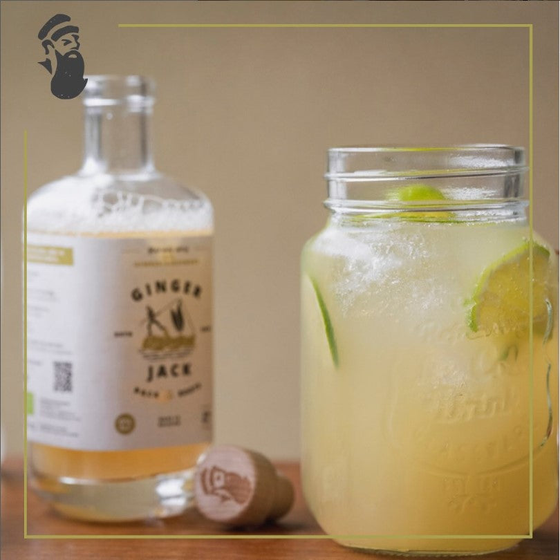 Vul een groot glas met ijsblokken. Voeg er vervolgens Ginger Jack, de citroensap en de suikersiroop aan toe. Erna even roeren en aftoppen met bruiswater.