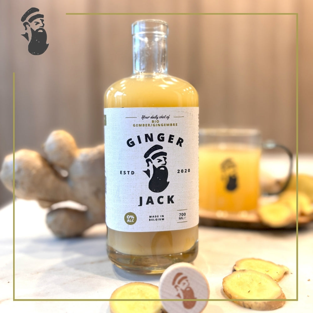 Ginger Jack is a 100% organic, non-alcoholic ginger drink, cold-pressed and bottled in Lier. It contains no less than 48% fresh organic ginger, fresh mint, lime, lemon, a small amount of fair trade organic cane sugar, and a subtle bouquet of spices. In short: the power of ginger, but deliciously packaged!